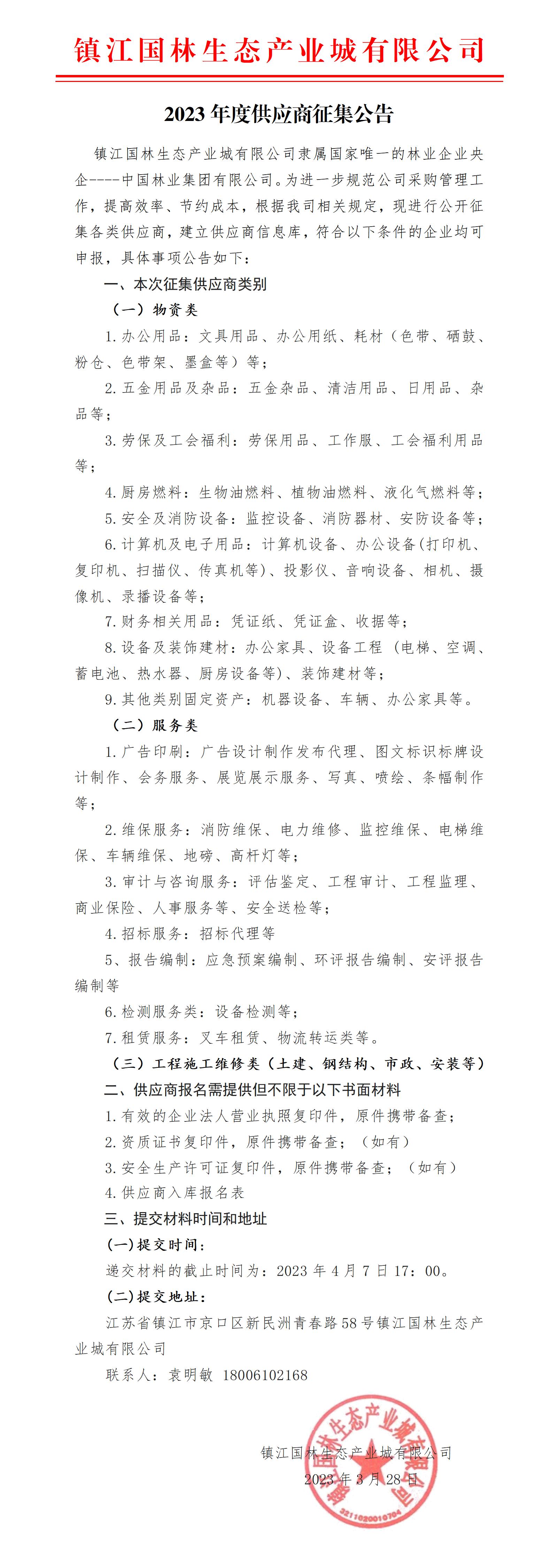 2023年度供應(yīng)商征集公告